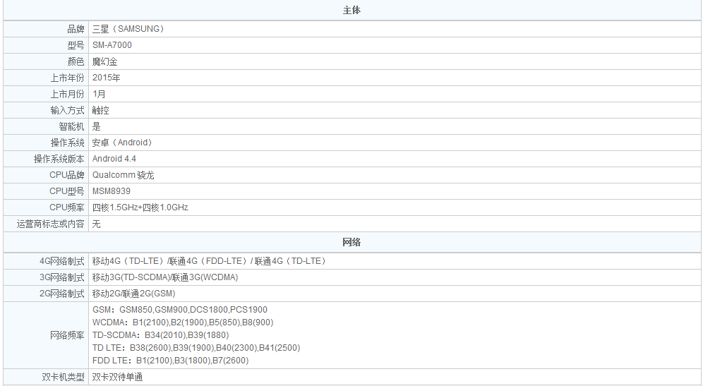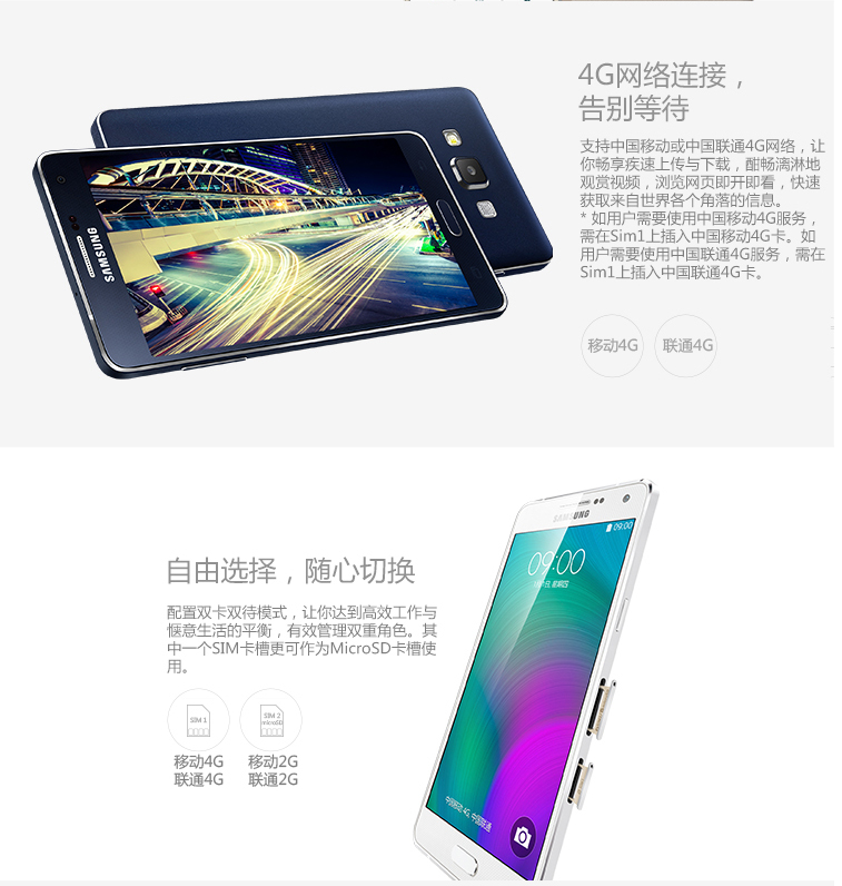 三星A7公开版(A7000) 双卡双待 移动联通双4G 黑色白色