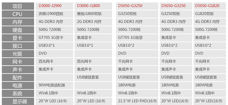 商品名称:联想 异能者 D3000 台式电脑(J1900四核 2G500G 集显 DVD ) 21.5普通显示器